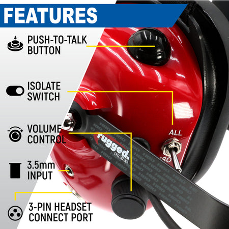 Connect a scanner or the included Nitro Bee to monitor race traffic using the 3.5mm audio input. A single audio source can be connected and shared with the group, or each individual headset can use its own listening device. The built-in isolate toggle lets each user quickly shut off the incoming 3.5mm audio with the flick of a switch, while still allowing for conversation!